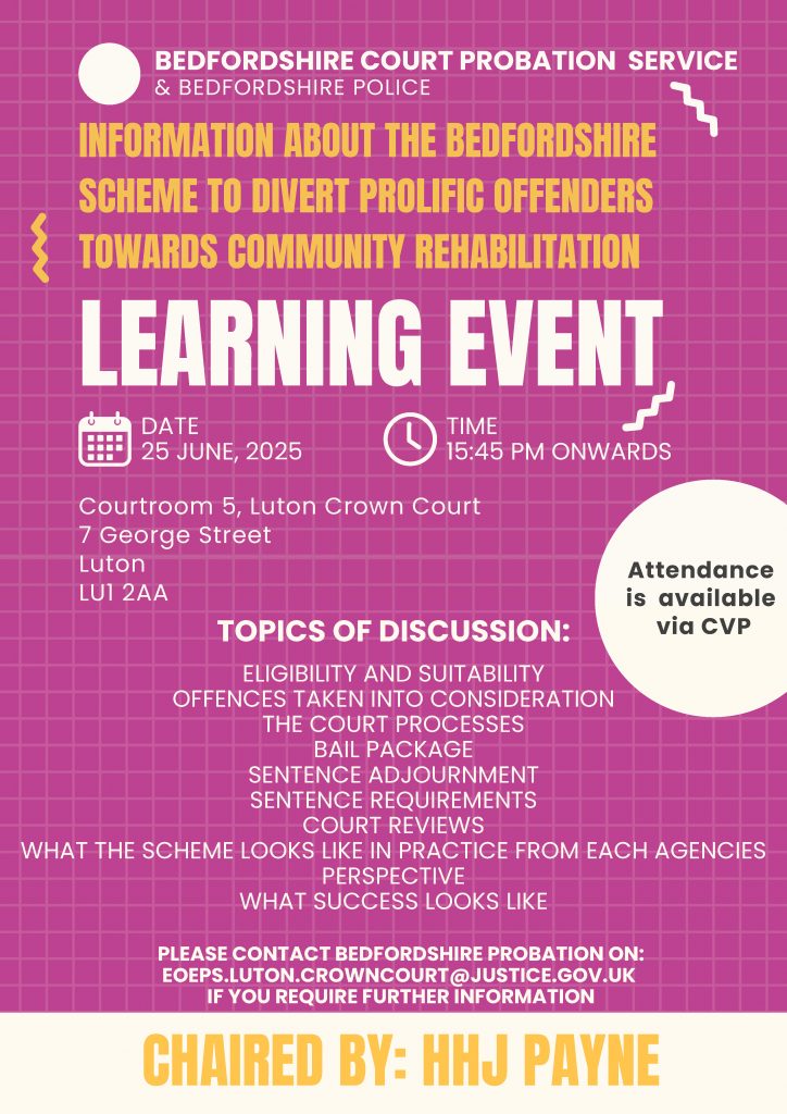 Learning Event – Bedfordshire Scheme to Divert Prolific Offenders Towards Community Rehabilitation Learning Event